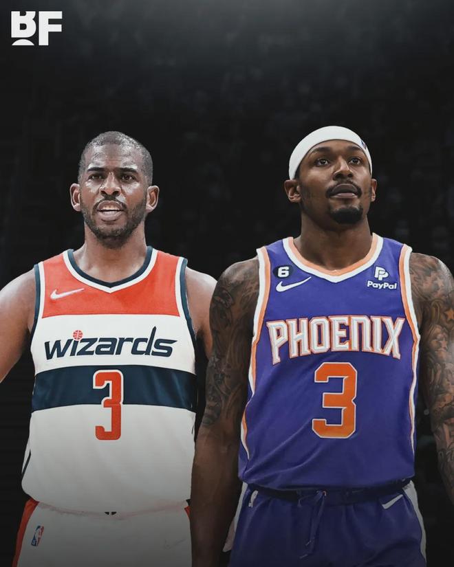比尔在奇才不仅拿到超级顶薪,还有交易否决权。当所有人都以为奇才会砸手里,太阳出手了!2023年夏天,太阳送出保罗、沙梅特、6个次轮签、4个首轮互换权、外加部分现金,从奇才交易得到比尔、乔丹-古德温和以赛亚-托德。